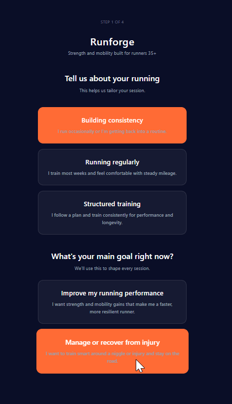 Hi I’m Ed, and I built Runforge because I kept seeing the same story in runners my age: the love for running stayed strong, but the body stopped cooperating.